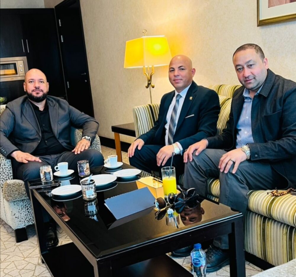 المهندس هيثم حسين رئيس مجلس مجمع عمال مصر يستقبل وزير الصناعة الليبي بشأن إنشاء مشروع مدينة عمر المختار الإقتصادية المستدامة في ليبيا لاطلاق المشروع في حفل عيد العمال ببنغازي برعايه وزارة العمل