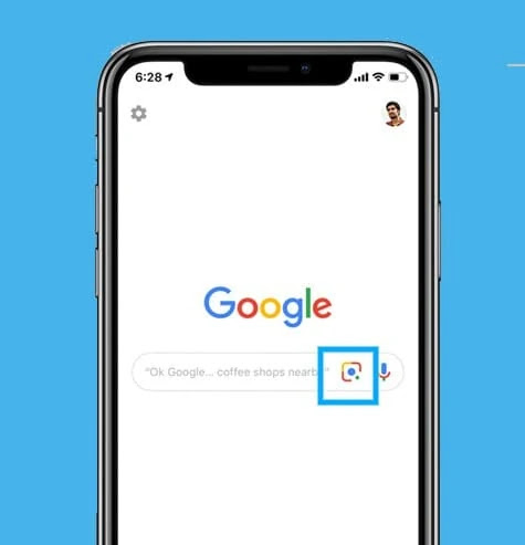 2. اضغط على أيقونة العدسة على الجانب الأيمن من شريط البحث.